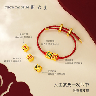 周大生黄金转运珠足金珐琅硬金国潮麻将发财手链圣诞礼物送女朋友由